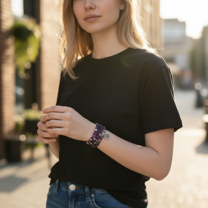 Bracelet/collier améthyste boules 6mm (perles d'éternité)